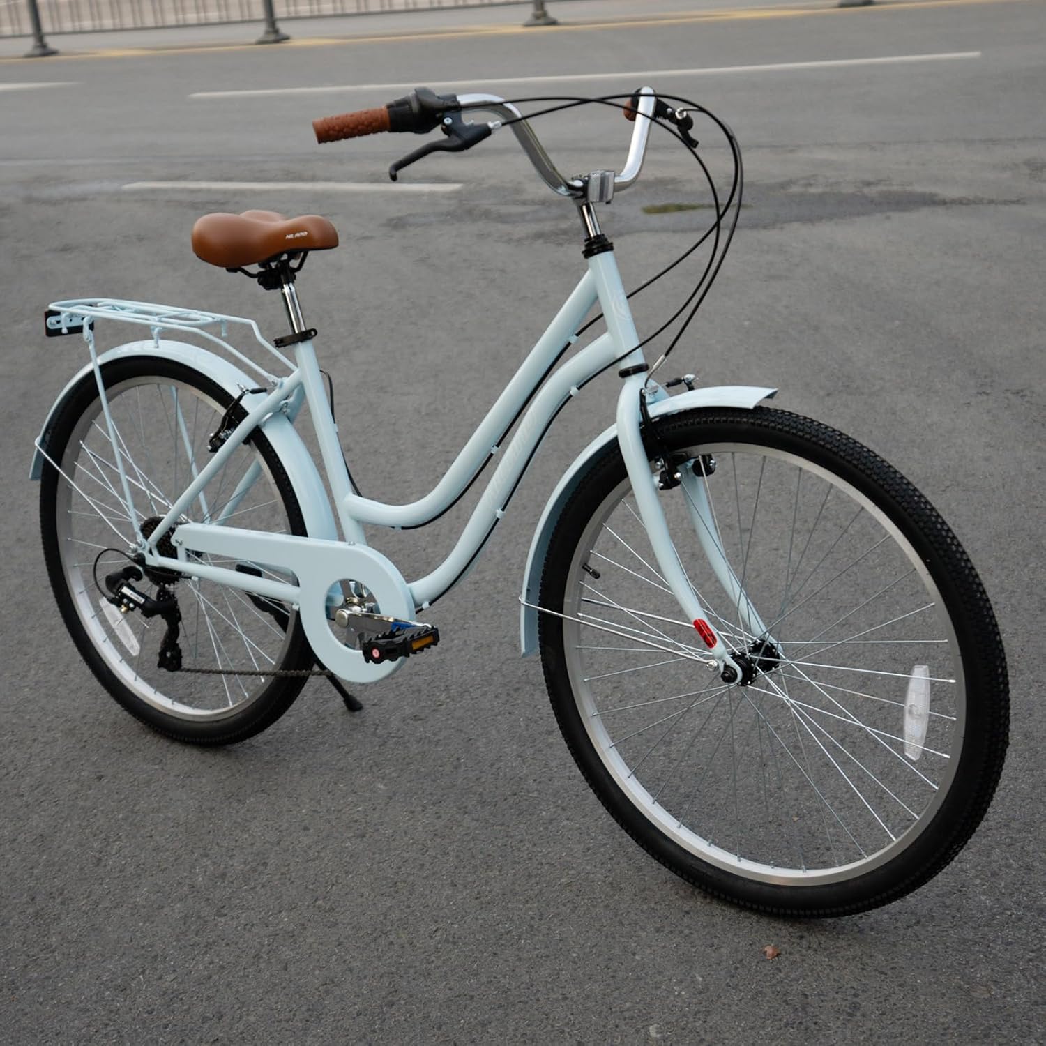 - Quality Tires: Adult beach cruiser bikes feature 26-inch wheels for excellent roll and a cushioned, stable ride, making a lady's daily commute in the city more energy efficient and faster