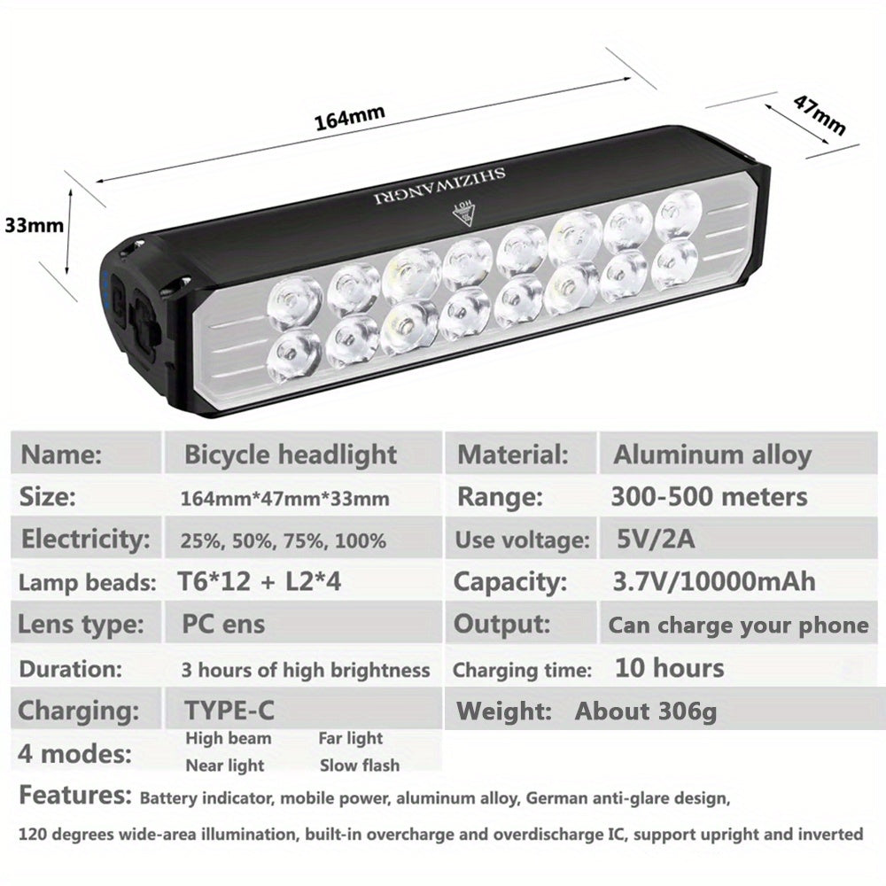 Bicycle LED Headlight - USB Rechargeable, 16x16 LED Front Bike Light, Aluminum Alloy, Non-Waterproof, Bright White Illumination, Handlebar Holder, Cycling Accessories, Cycling Light|Sleek Headlamp|Aluminum Alloy Body