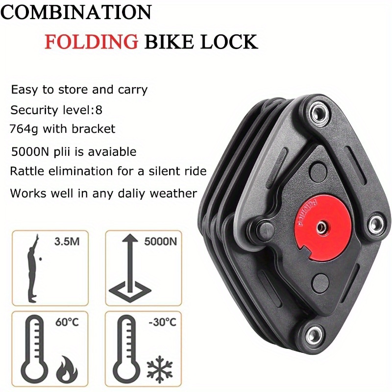 Folding Bike Lock with 2 Keys Anti Theft Strong Security Bicycle Locks Anti Drill Pick Cylinder Foldable Bike Lock with Mounting Bracket 2.8ft 1.4lb