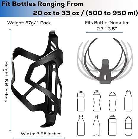 - Fits Most Standard Bottles: Aluminum bike bottle holder are designed to be compatible with a wide range of standard bottles. Specifically, they can easily accommodate bottles ranging from 20 to 33 ounces (500 to 950 ml), including popular sizes like 21, 24, and 25 ounces.