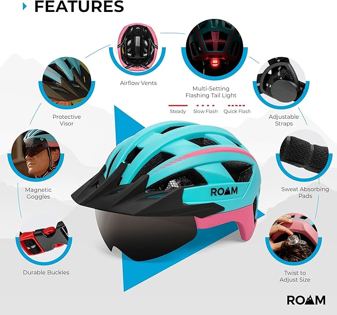 - ULTIMATE PROTECTION - Our bike helmets for women and men also feature a sun visor, detachable magnetic goggles, and UV helmet light for maximum protection road cycling, mountain biking, or on a crosstrail outdoors.