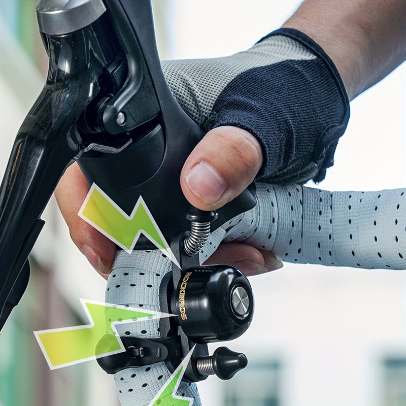 ROCKBROS Mini Cycling Road Bike Bell - Dual Bell Hammers Design, Black Copper Finish, Ergonomic Handlebar Mount for Enhanced Safety & Control, Cycling Accessories, Bike Handlebar Accessory, Sleek Metallic Bell, Durable Construction